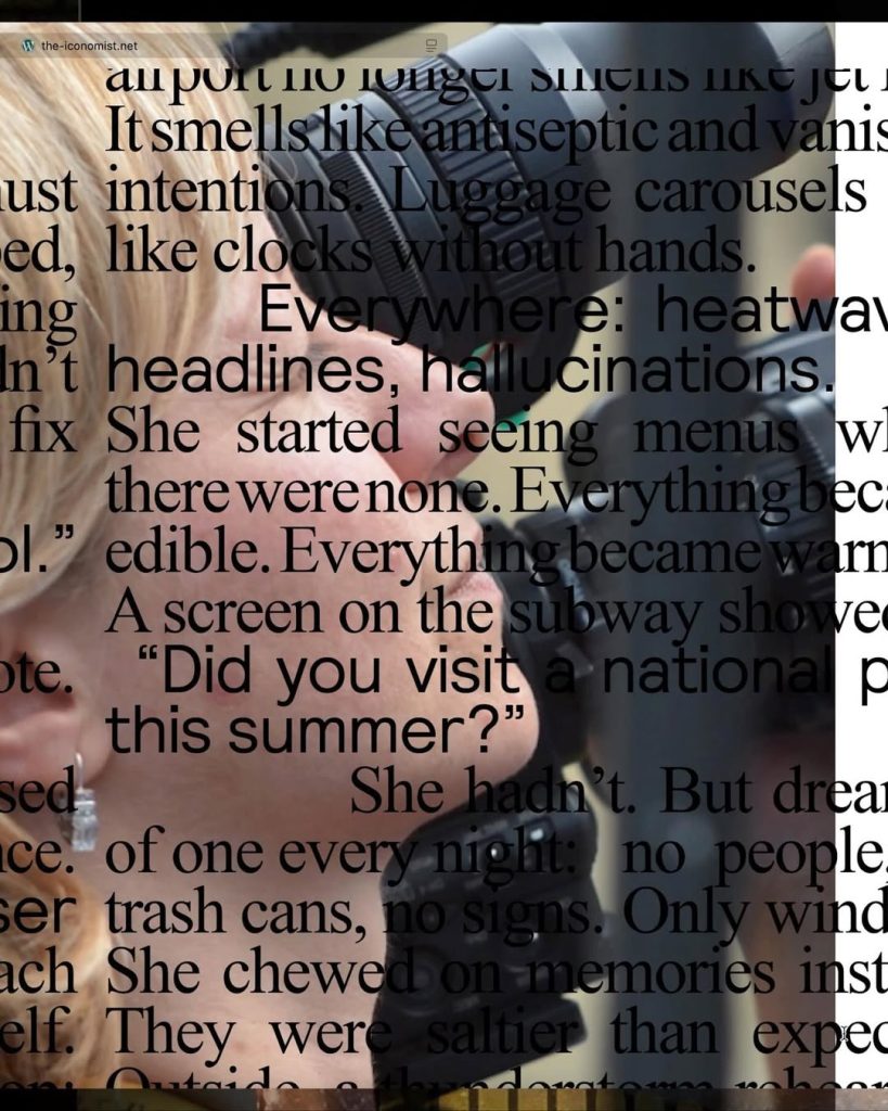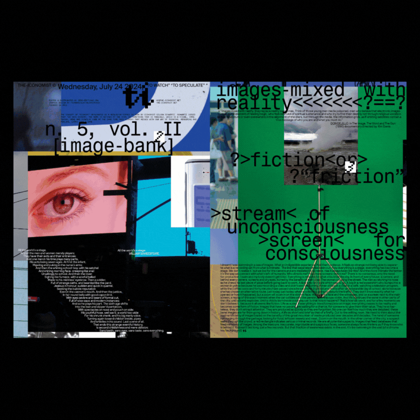 “THE-ICONOMIST’s latest issue is hectic and “suffocating” in its use of online image banks. The magazine has never really operated within the requirements of a conventional magazine. This isn’t just because the issues don’t have any advertisements or an ISBN number, or even that it doesn’t have a website that can be indexed by Google. The magazine defies a traditional editorial approach at every turn.After its first four issues’ focus on AI-generated visuals, the magazine has returned with its fifth edition — a printed exploration of surveillance in the digital age.” — ELLIS TREE, It’s Nice That
