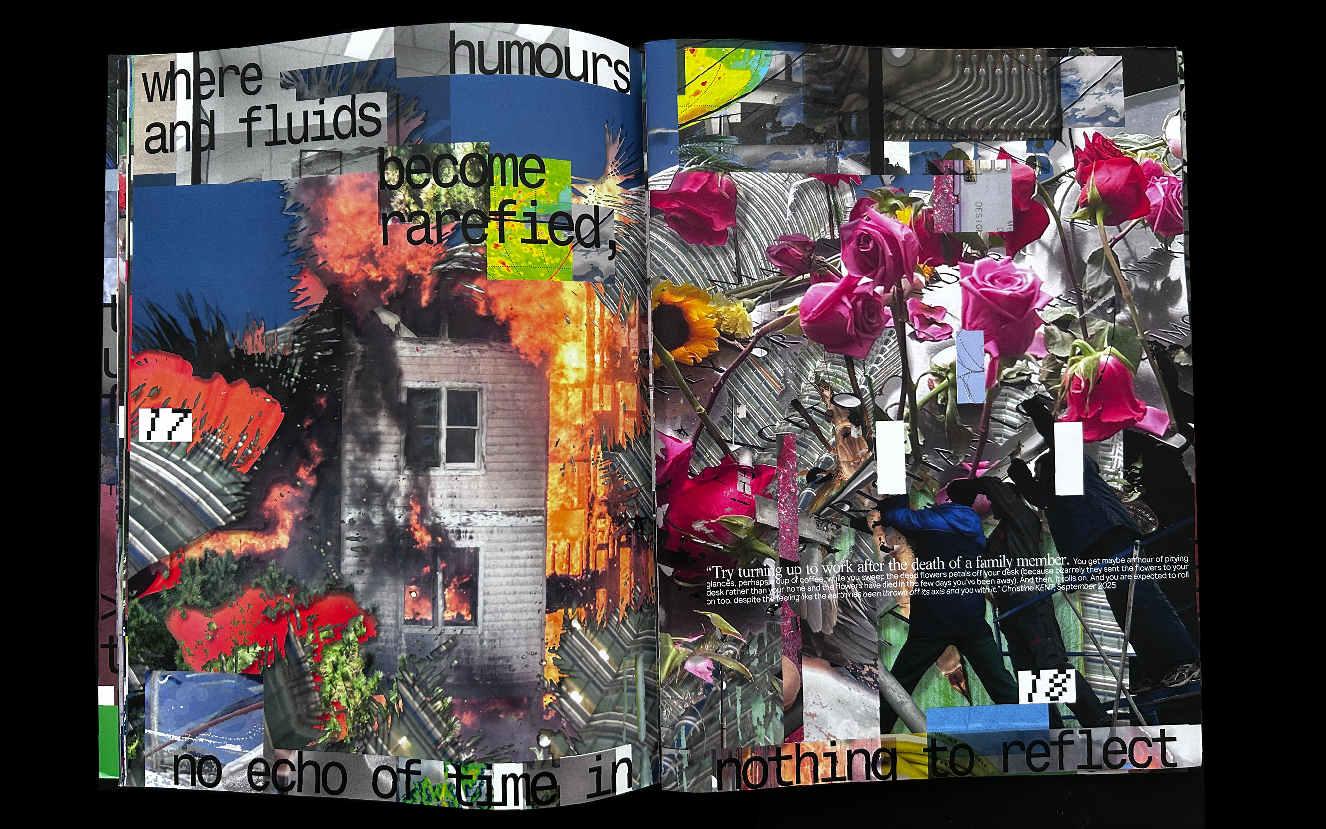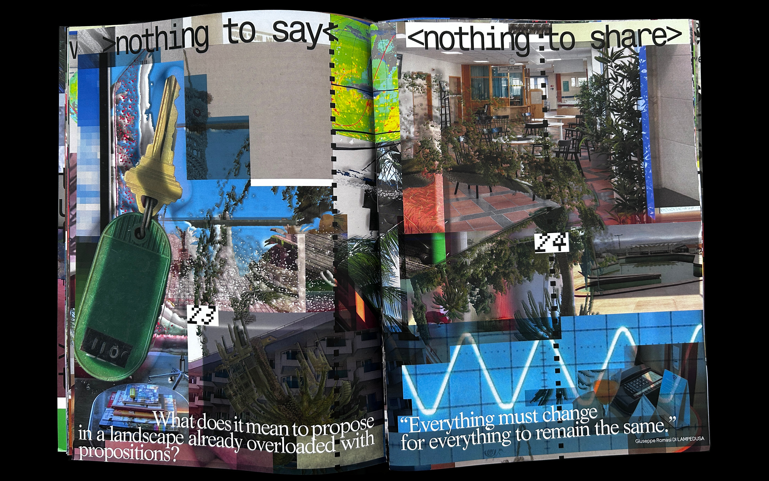Nº 8 — AFTER-IMAGE. The eighth issue of THE-ICONOMIST, titled To propose / To recreate, takes as its point of departure Édouard Glissant’s notion of the aprèzan: the present as a living interval between destruction and regeneration. From this idea unfolds a reflection on what it means to create in an era where images multiply endlessly, and where visibility itself has become a form of capture. In a world increasingly shaped by artificial intelligence, every image we share becomes data; analyzed, categorized, and reabsorbed into vast systems of recognition. Within this landscape, the publication suggests a different kind of response: a digital craftsmanship that moves against automation, exploring how the deliberate act of cutting, layering, and reassembling images can function as both creation and camouflage, a way of disrupting the smooth readability demanded by machines. To propose / To recreate unfolds as a moving terrain of visual thought, which is part proposal, part reconstruction. In addition to experimental texts created by THE-ICONOMIST, the edition also features selected excerpts from authors such as Naomi Klein, Thomas Pynchon, Mark Fisher, Olga Tokarczuk, Fernando Birri, among others.